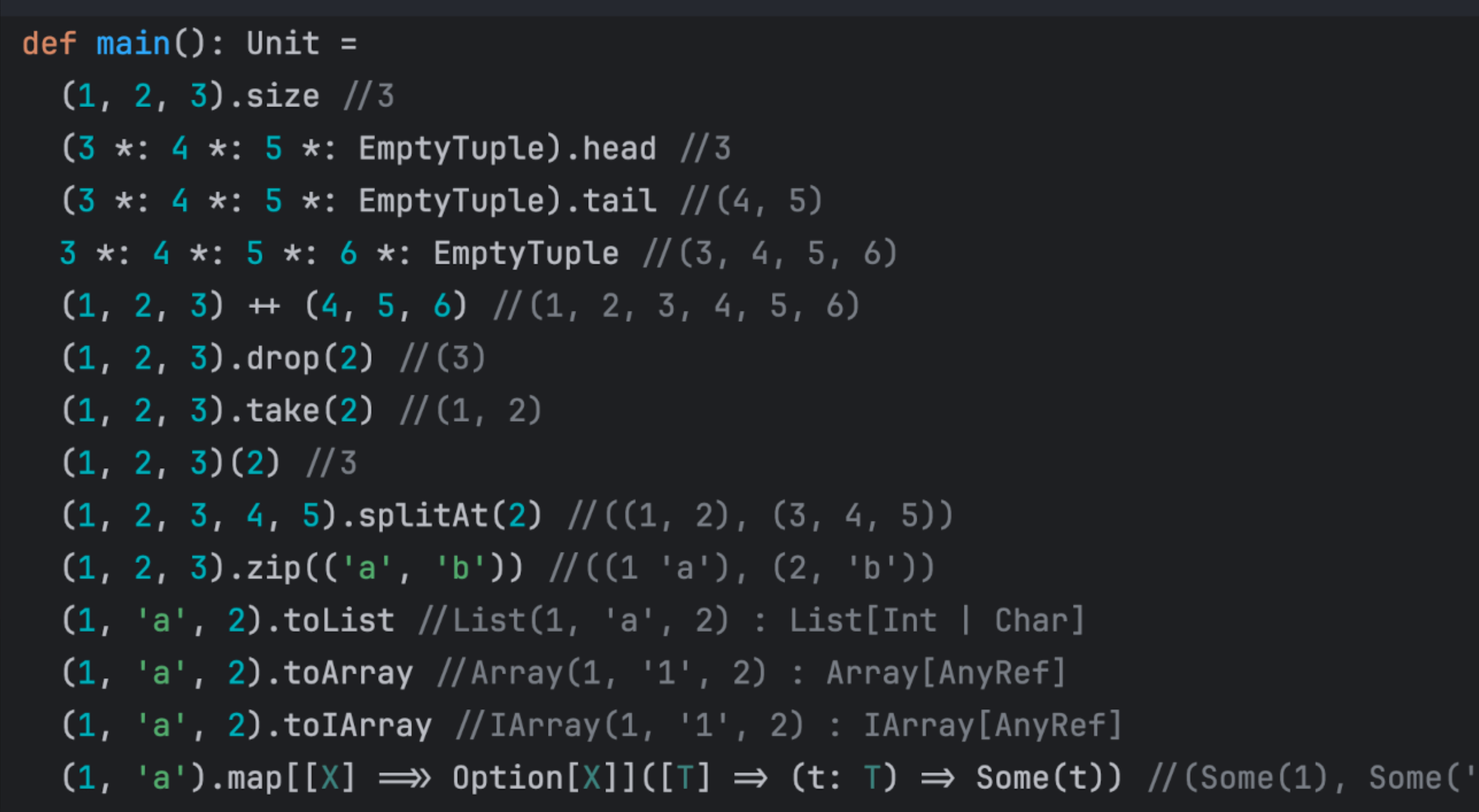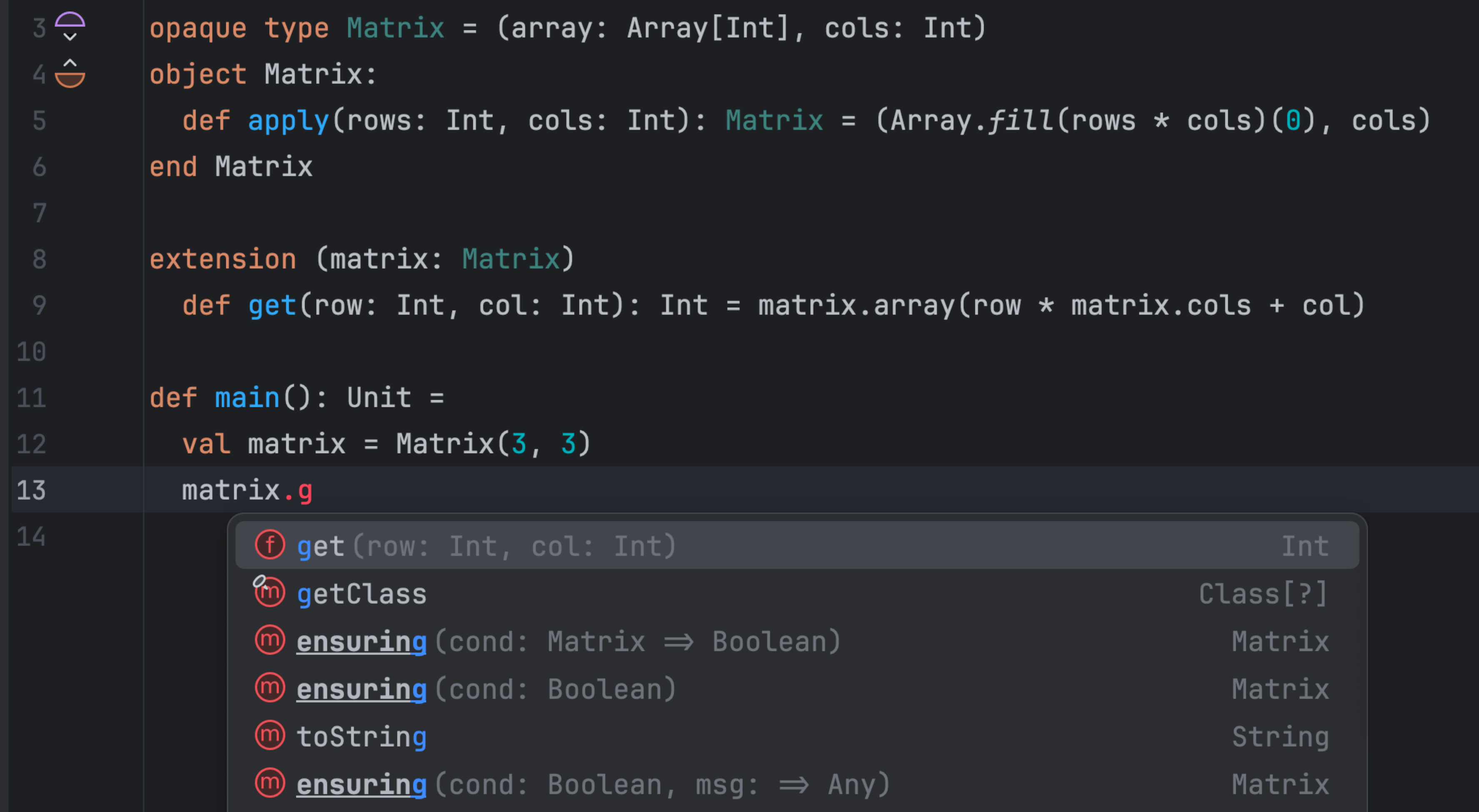 IntelliJ IDEA 2025.2 では、Scala 3 の不透明型と新しいジェネリクスタプル演算が完全にサポートされます。不透明型は、ギブンス、拡張メソッド、エイリアス境界と適切に統合され、複雑なシナリオにおける推論が改善されました。zip