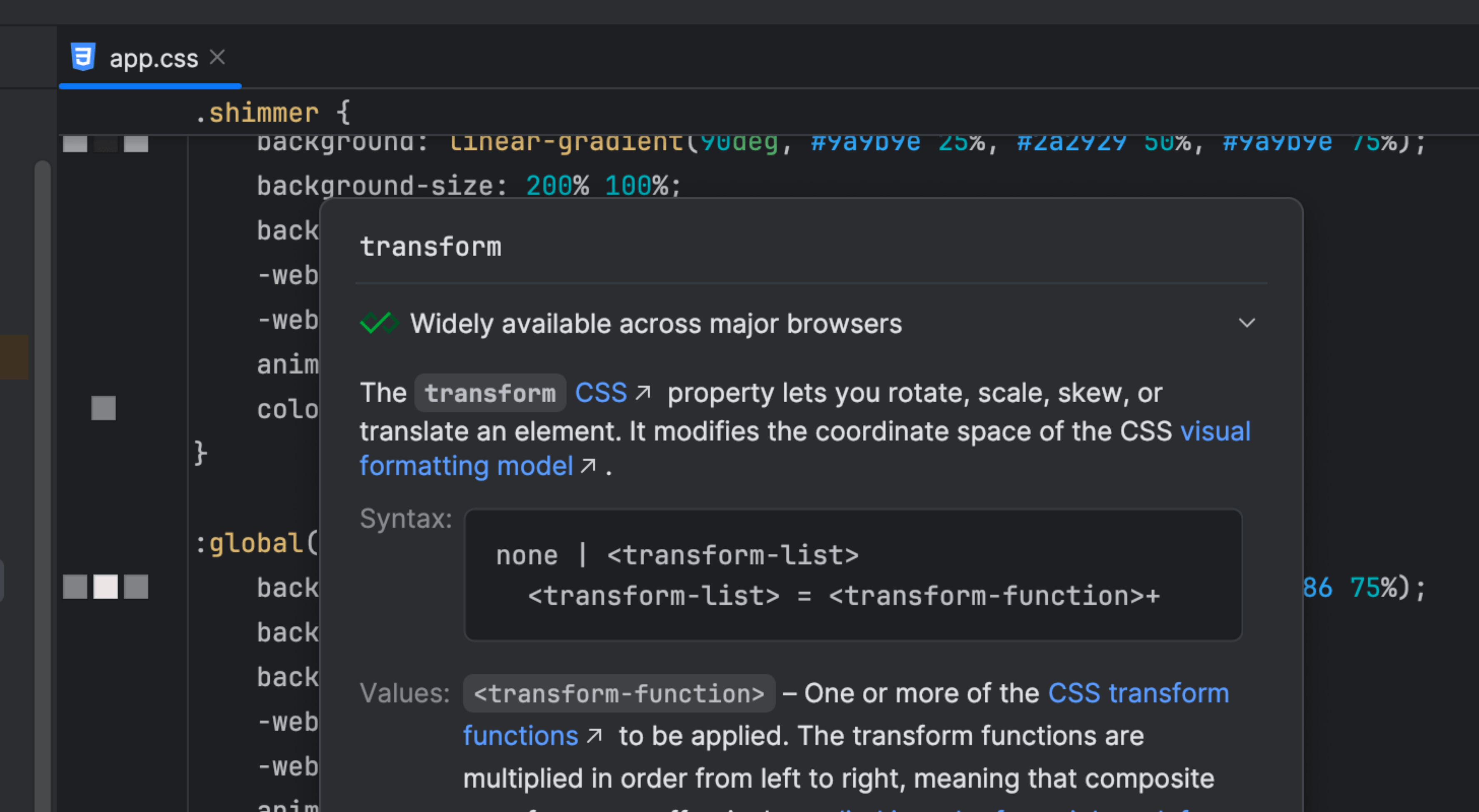 クイックドキュメントには Web プラットフォームベースラインデータが含まれており、エディターを移動することなく Web API のブラウザーサポートを簡単に確認できます。また、Bun は自動的に検出され、スクリプトの実行からパッケージのインストールまで完全に構成されるため、最小限の設定でプロジェクトを開始できます。
