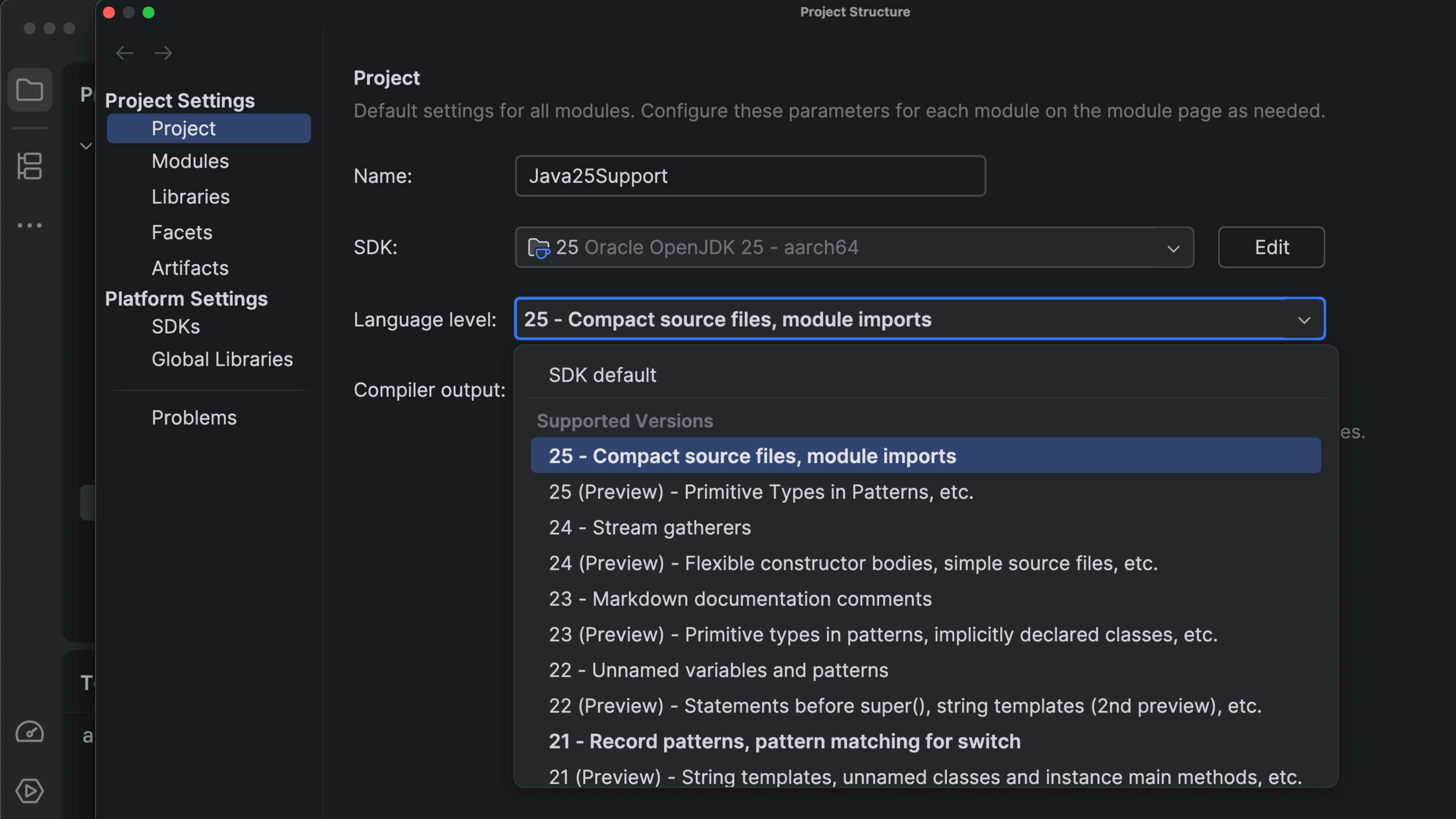 2025 年 9 月にリリースされる Java 25 は、Java プラットフォームの次期長期サポート(LTS)バージョンです。IntelliJ IDEA はリリース初日から Java 25 をサポートしており、開発者は最新の言語、ランタイム、ツールの強化によるメリットをすぐに享受できます。