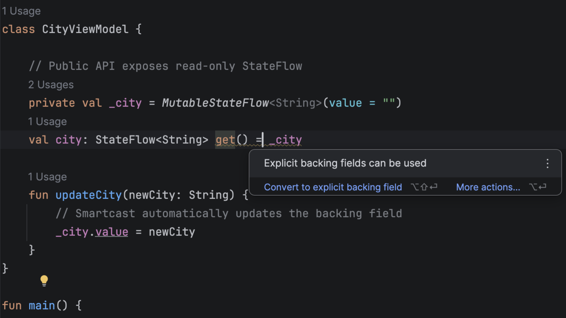 IntelliJ IDEA 2026.1 では、Kotlin、2.3.0、2.3.20 の最新言語機能に対するサポートが改善されました。新バージョンでは、when 式のネストされた型エイリアスとデータフローの網羅性チェックが安定版となり、IntelliJ IDEA ですでに試用できるいくつかの実験的な機能も導入されています。