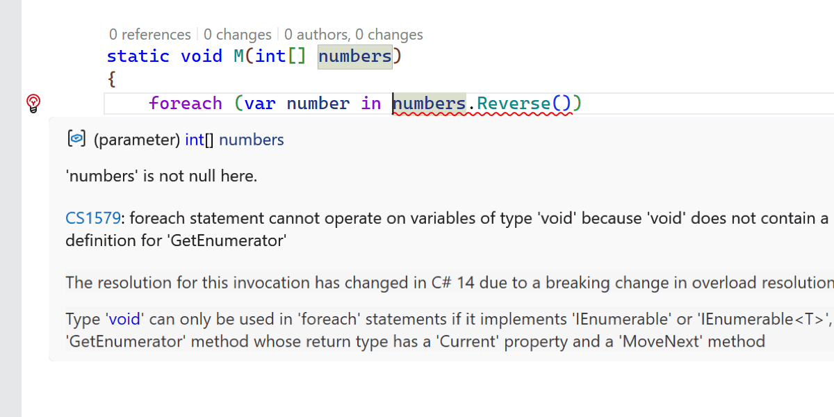 field キーワードのサポートは、最近のコンパイラーの更新に合わせて調整されました。Enumerable.Reverse がスパンで使用されるときに重大な変更を検出します。当社のブログで、ReSharper および Rider における C# 14 機能の最新サポートについて学びましょう。