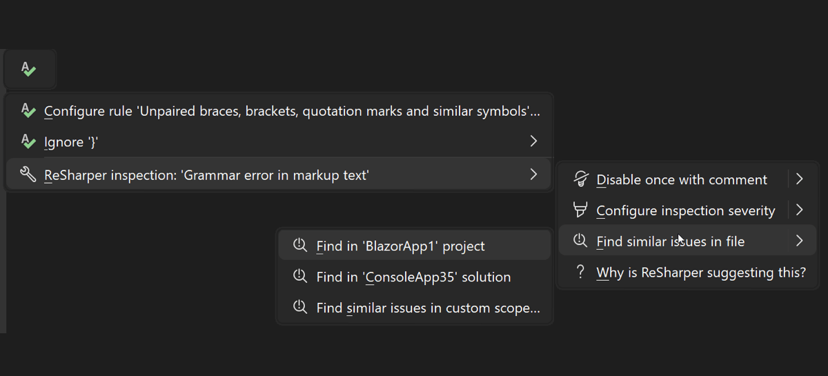 Visual Studio 2026 の ReSharper は新しい新しい外観になりましたにもお気づきかもしれません。ポップアップやドロップダウンメニュー、いくつかのツールウィンドウ( 検索結果や ユニットテストなど)のデザインを一新し、進化する Visual Studio UI にマッチする洗練された外観を実現しました。