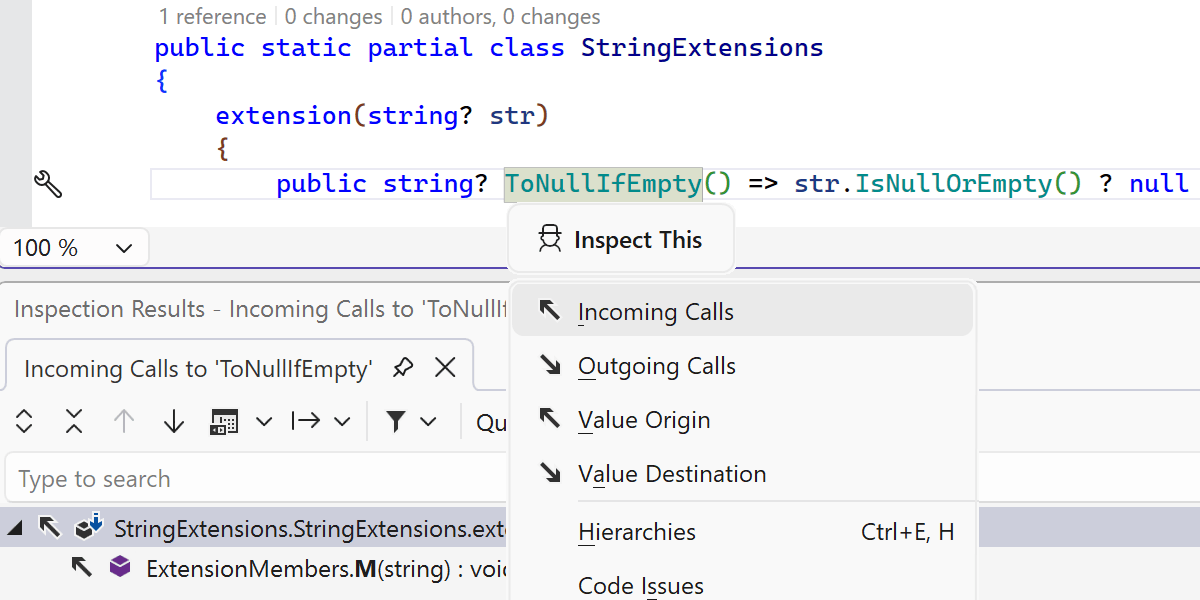 ReSharper の他の多くの機能も、新しい種類の拡張メンバーと互換性があります。
