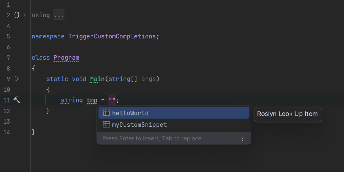 この機能強化により、高度な ASP.NET Core 補完 (ルートパターンや埋め込み言語構文など) のサポートに加え、コミュニティパッケージや社内ツールからのカスタム補完もサポートされるようになり、Rider 開発エクスペリエンスの柔軟性が向上します。
