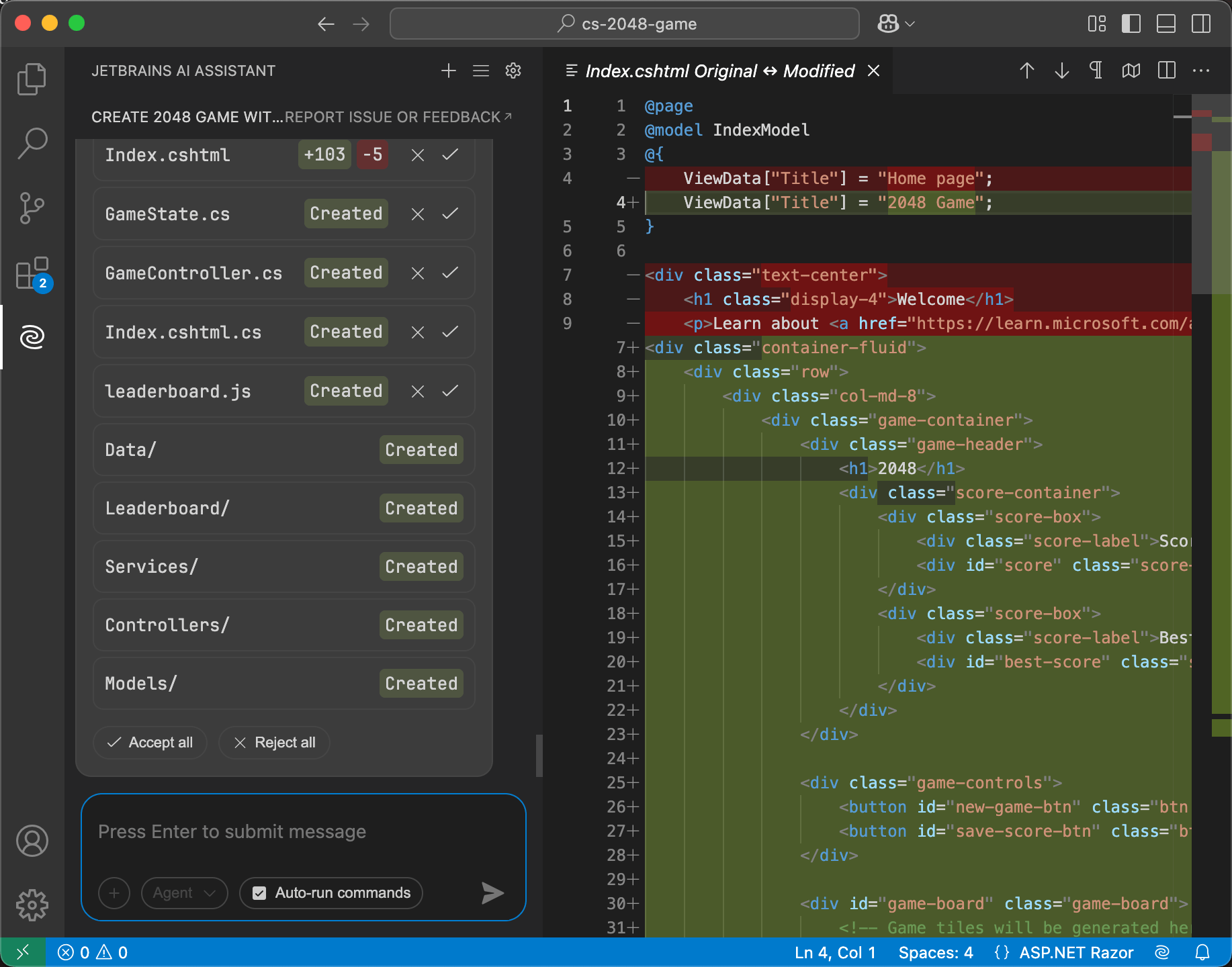 Rider と VS Code の両方で C# をご利用の場合、これは最適なオプションです。現在お持ちの JetBrains AI サブスクリプションをご利用いただけます。まだお持ちでない場合は、JetBrains アカウントでログインすると、無料の AI EAP ライセンスが自動的に発行されます。