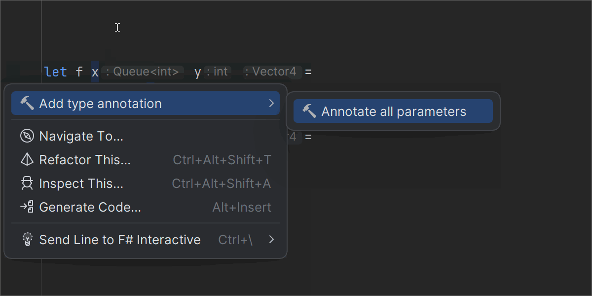 コードアノテーションは必要な型を自動的にインポートするようになり、コンテキストアクションを介して推論された型を指定することがより多くの状況でサポートされるようになりました。