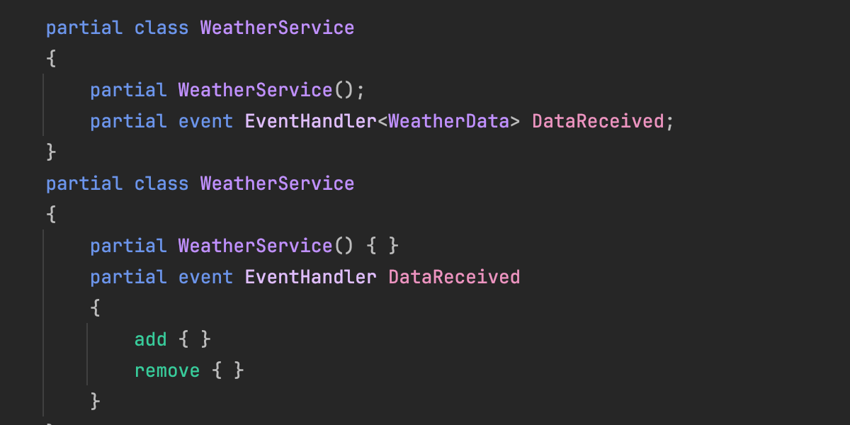 C# 14 は、部分イベントとコンストラクターによるソース生成の可能性を拡張し続けています。Rider は、これらの新しいユースケースに対応するために更新されます。