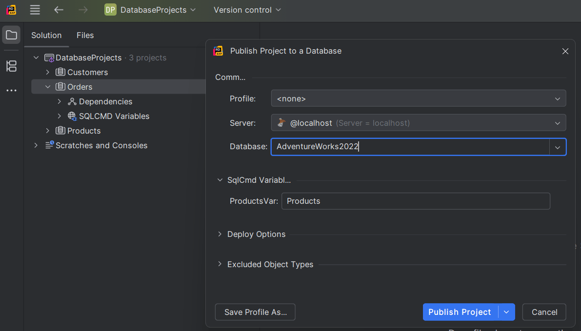 Rider は、バンドルされたプラグインを通じて SQL データベースプロジェクトのサポートを開始しました。このプラグインはすぐに使用でき、SQL データベースプロジェクトでの作業がよりスムーズになります。主な機能は以下のとおりです。