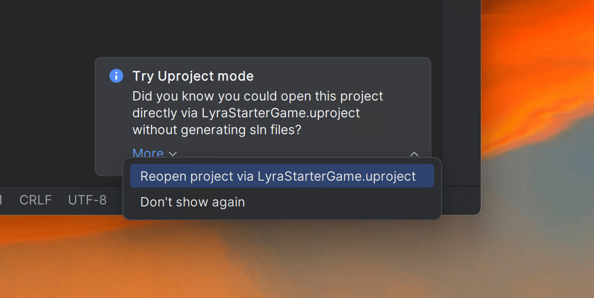 ファイルを使用して Unreal Engine プロジェクトをロードすることを提案する便利な小さな通知を追加しました。