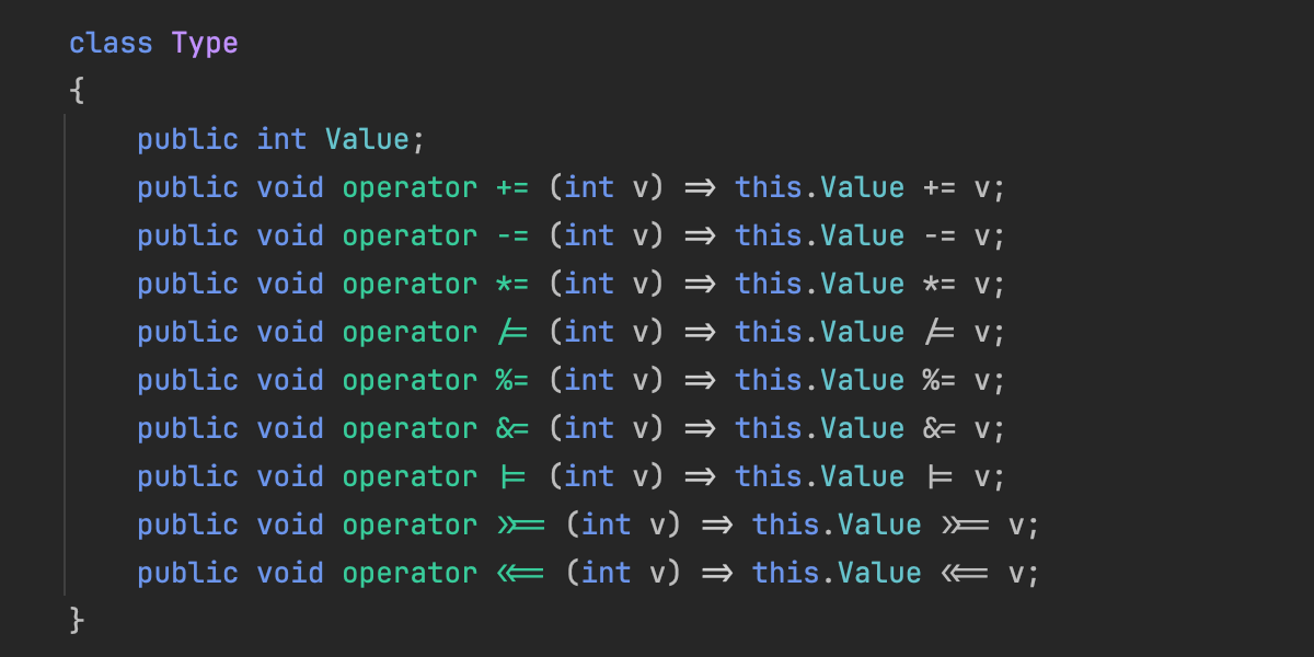 Rider は、C# 14 で導入されたユーザー定義の複合代入演算子を正しく理解して処理するようになりました。