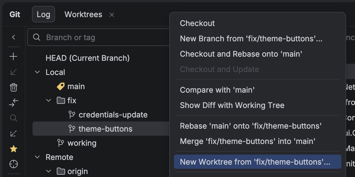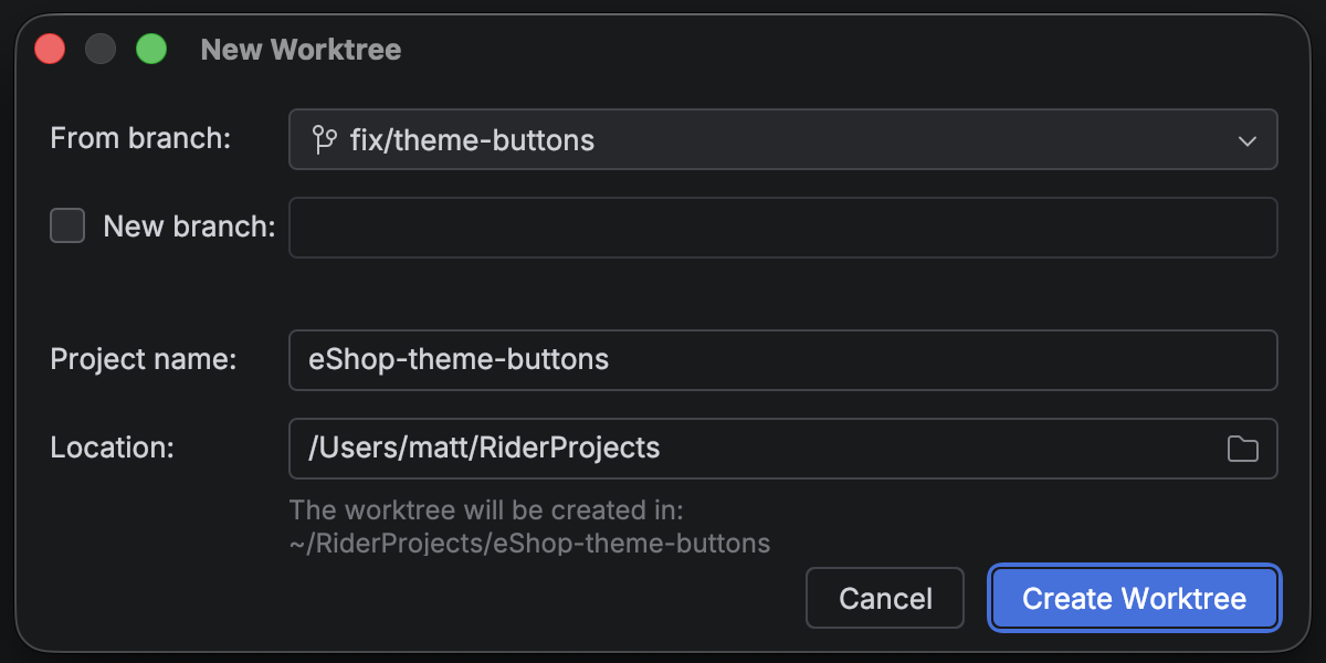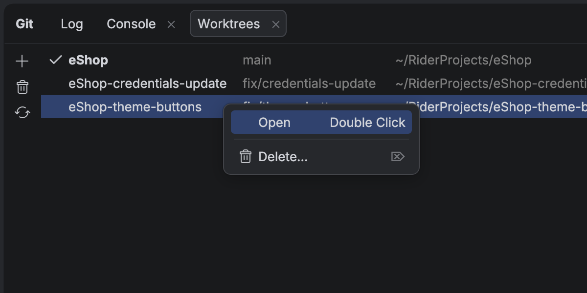 AI エージェントの進化に伴い、複数のタスクを並行して実行することが大幅な時間短縮につながり、まさに Git ワークツリーが非常に役立つ場面となっています。AI を活用したソフトウェア開発における最先端のワークフローをサポートするため、Rider は Git ワークツリーをフルサポートするようになりました。緊急のホットフィックス用に別のワークツリーを作成し、別のワークツリーを AI エージェントに引き継ぎ、メインのブランチで作業を続ける――これらすべてを同時に、中断することなく実行できます。